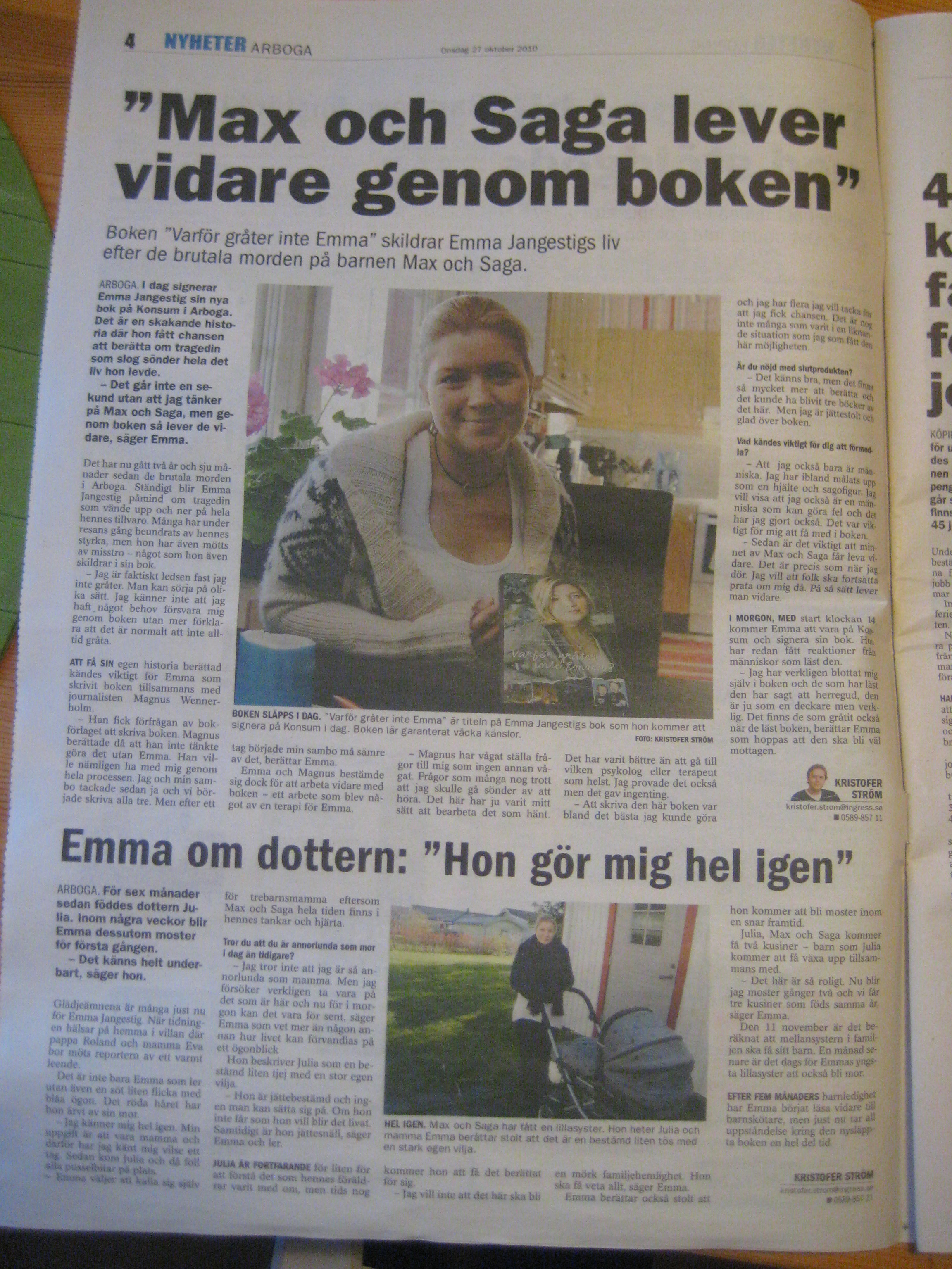Idag skriver bl.a. lokala Arboga Tidning om att Emma Jangestigs bok kommer ut.