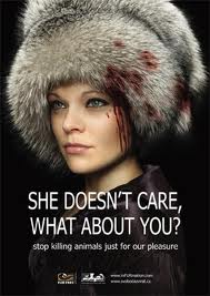 Fruktansvärda bilder av plågade djur som lever under hemska förhållanden bara för att bli en tofs på en mössa som Maria Lindholm på DN, med blod på händerna, vill göra reklam för! Skärpning DN!