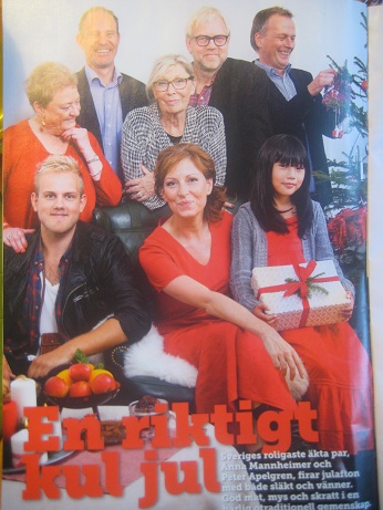Där står han – längst upp till höger – och tänker fira ”En riktigt kul jul” tillsammans med Anna och Carin Mannheimer med familj. Familjerecepten får han också del av!