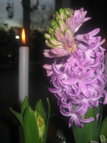 Nästan 3 minusgrader i natt – då fryser Petunia! Inne sprids doften av hyacint och tända ljus. Vi nalkas en underbar tid!