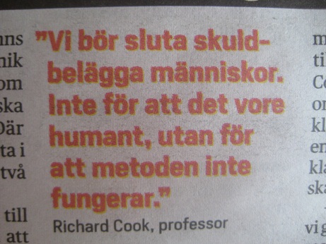 Sen anser ju jag förstås att det vore extremt humant att sluta skuldbelägga för att istället göra någonting åt det verkliga problemet. Den åsikten delar jag nog med Richard Cook.